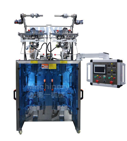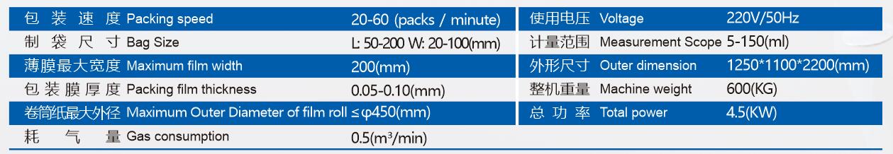 采用PLC程序控制,先进的触摸式人机界面,伺服拉膜,确保袋长准确,制袋背封边美观;人性化的圆角设计,不易造成割伤;双易撕口设计,新颖别致,撕袋方便;